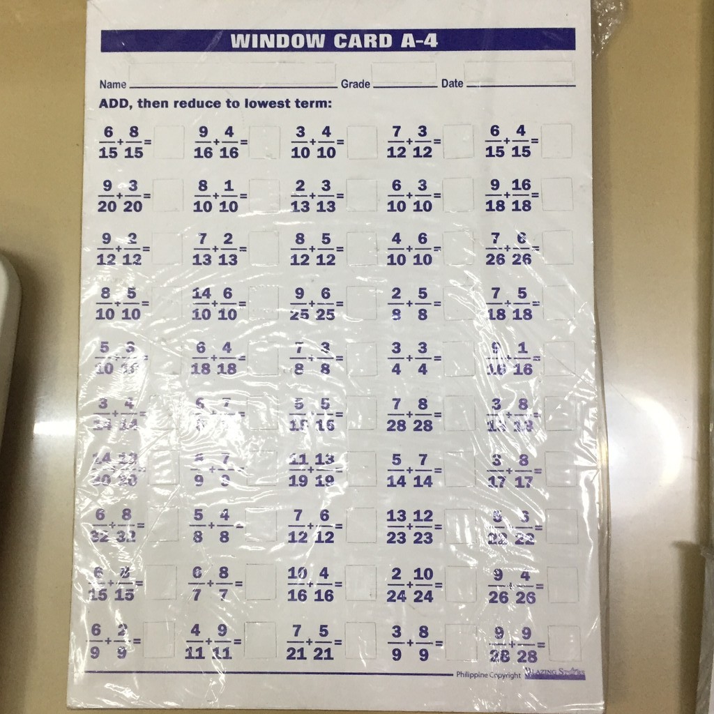 Window Card Math / Window Drill Cards A2 S2 M2 D2 Shopee Philippines -
